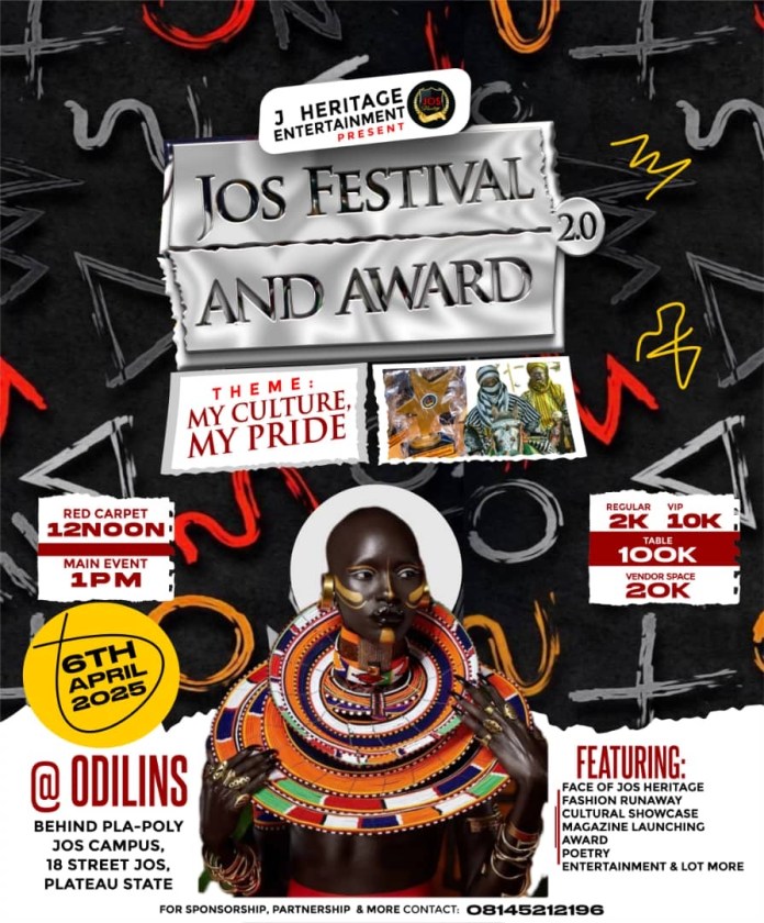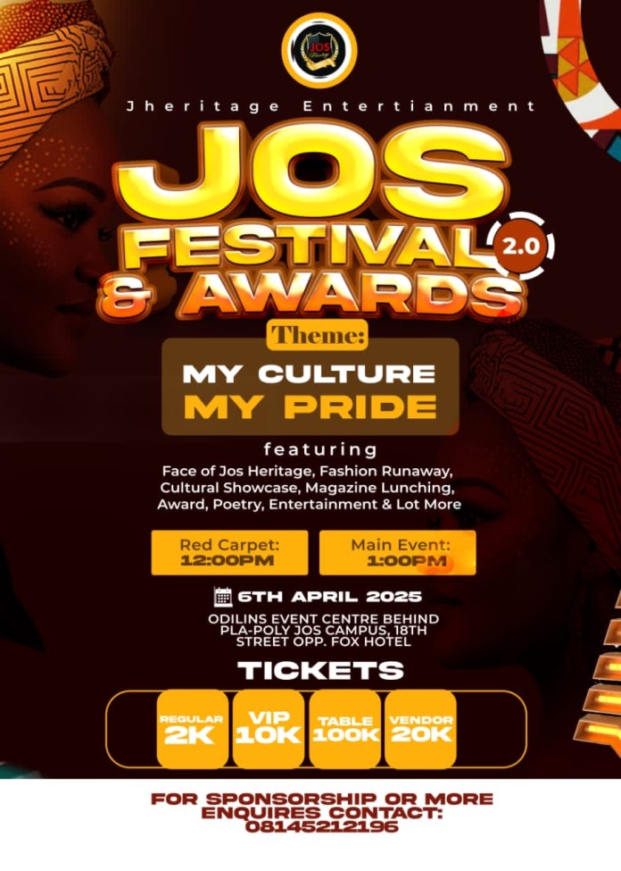 The JOS Festival and Award 2.0 is set to take place on April 6, 2025, at the prestigious Odilins Event Centre, located behind Pla-Poly Jos Campus, 18th Street, opposite Fox Hotel, Jos.