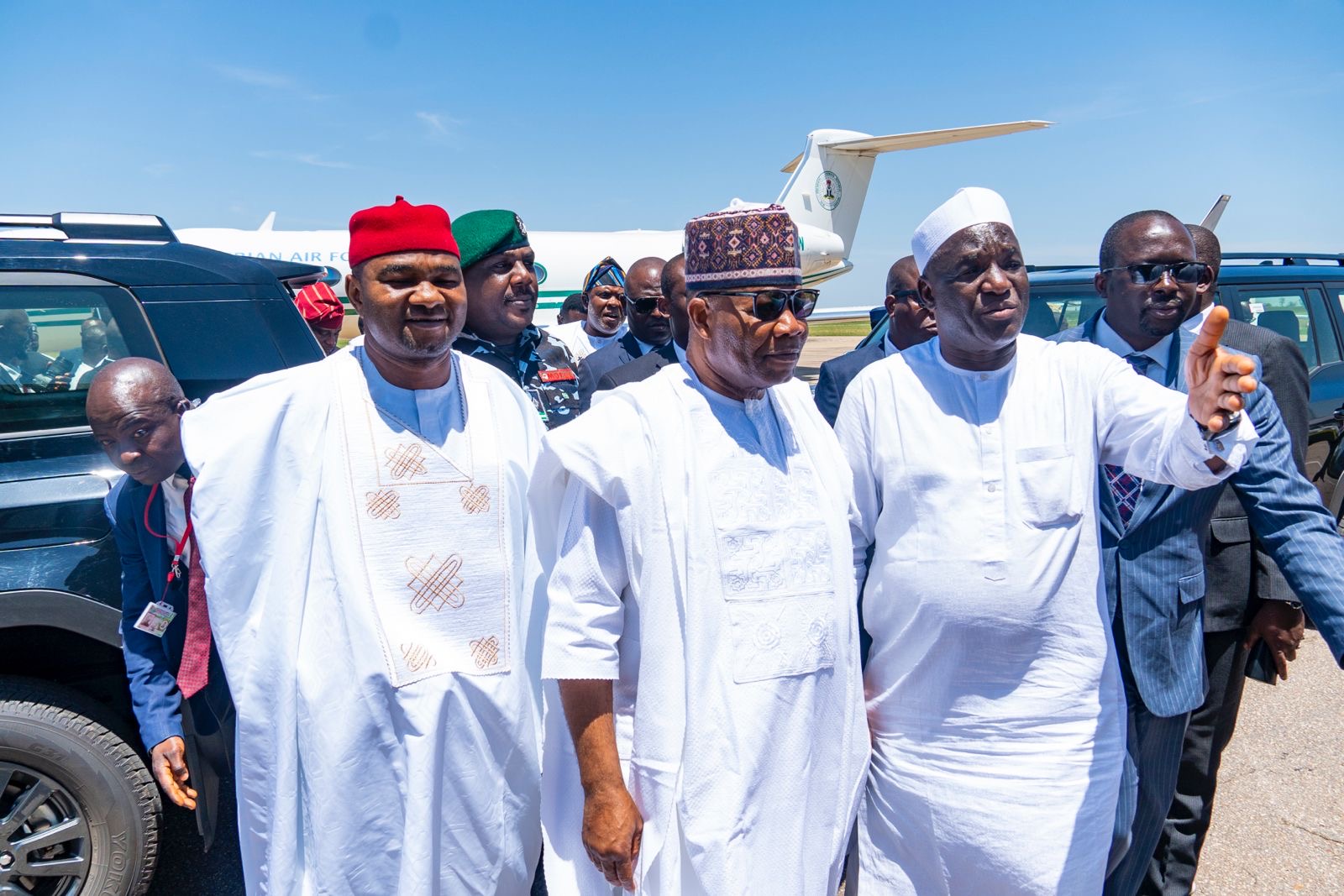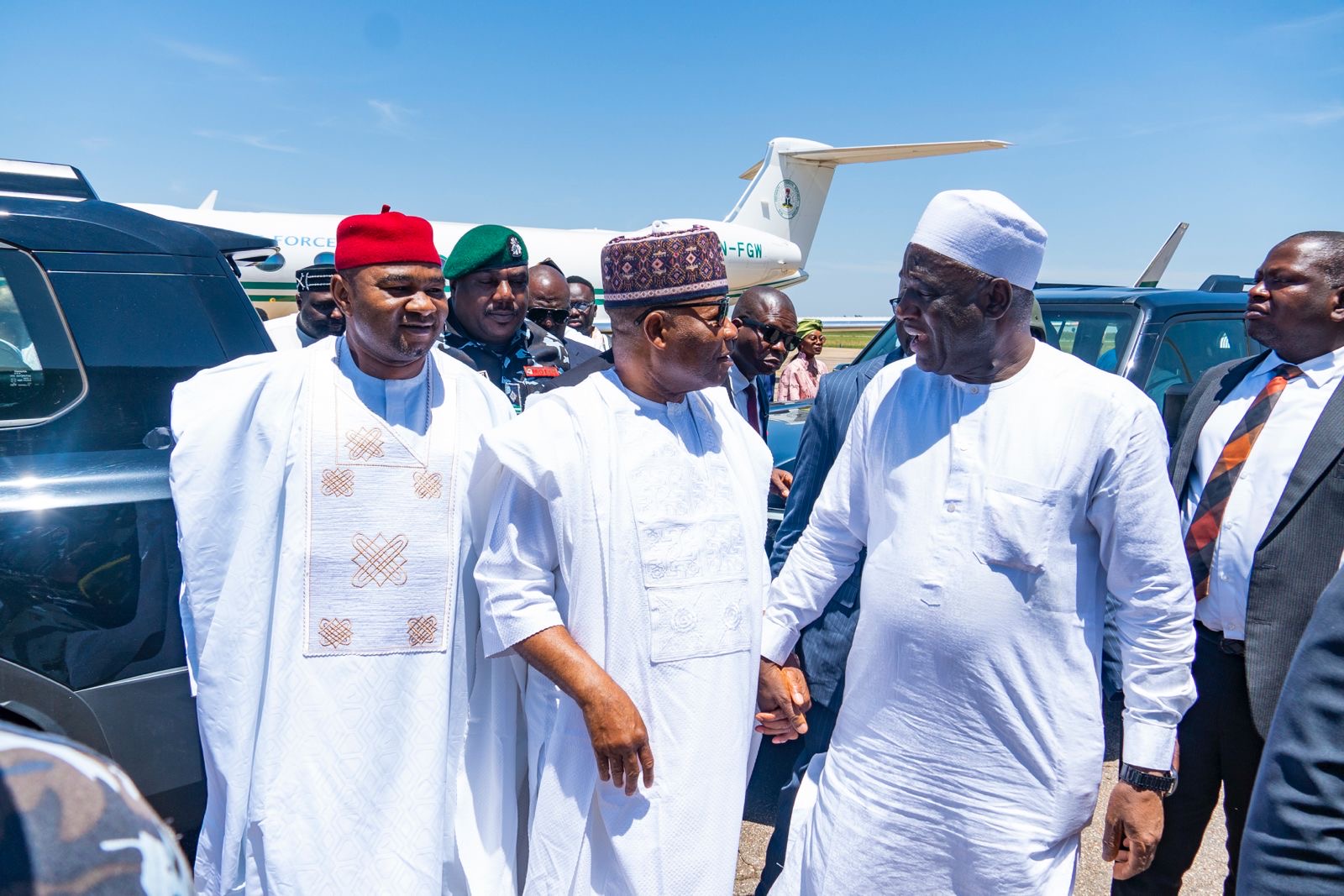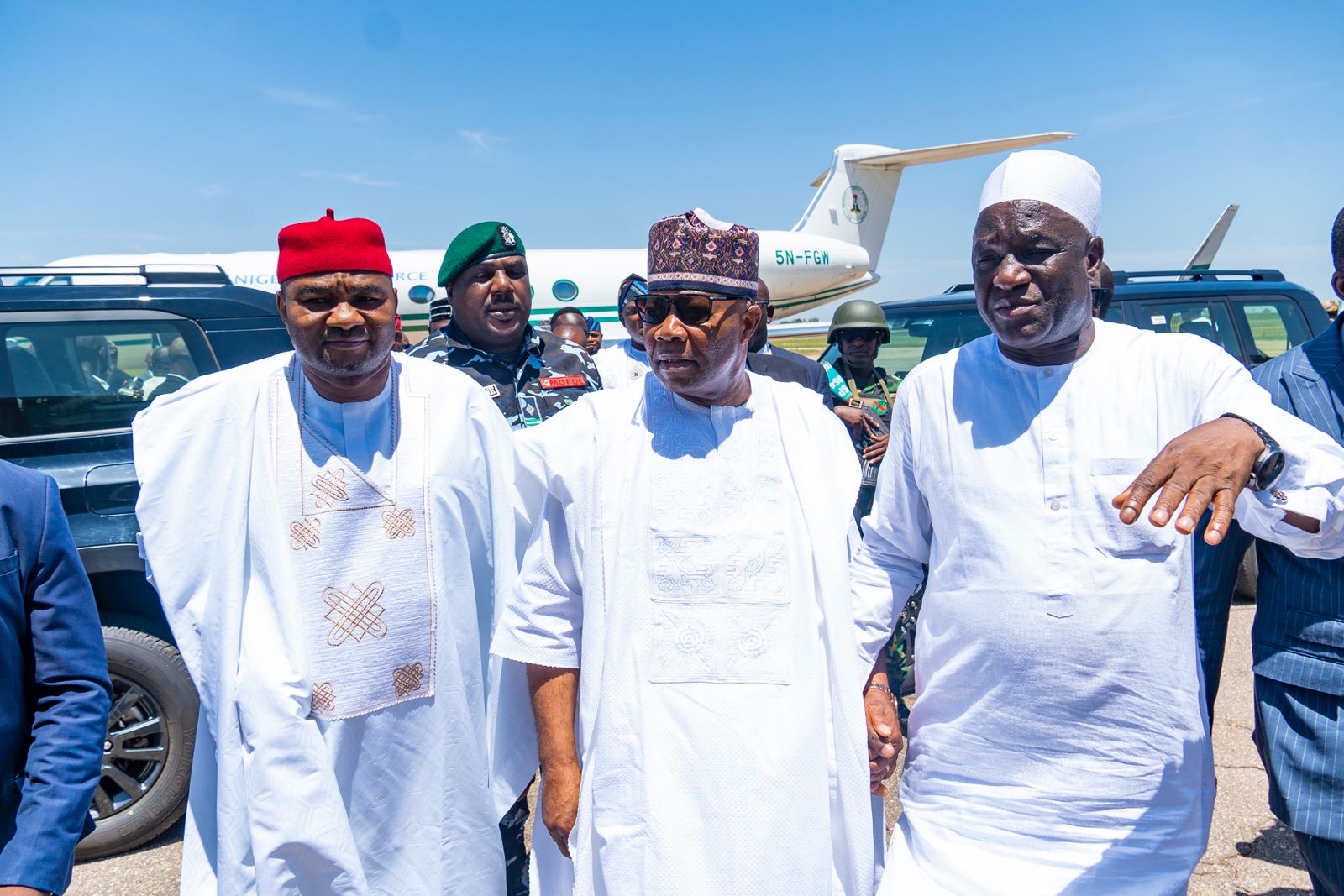 Shortly after their Arrival, the President of the Federal Republic of Nigeria, His Excellency President Bola Ahmed Tinubu, arrived at the Yakubu Gowon Airport amid his delegation into the state.