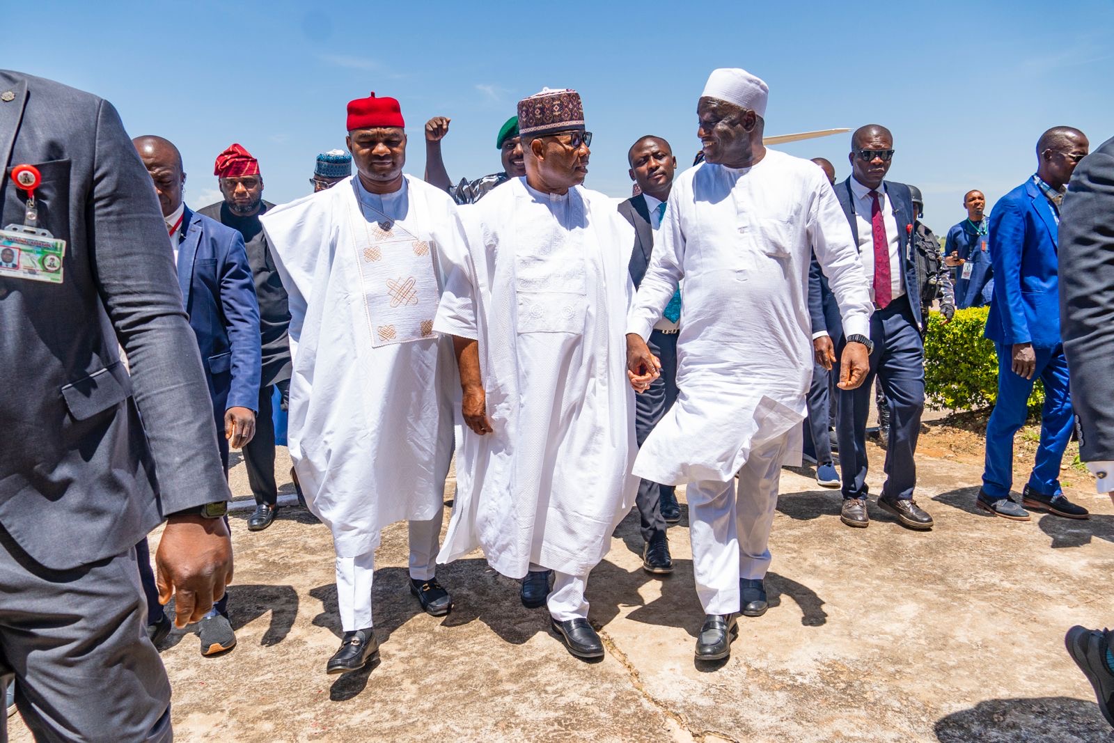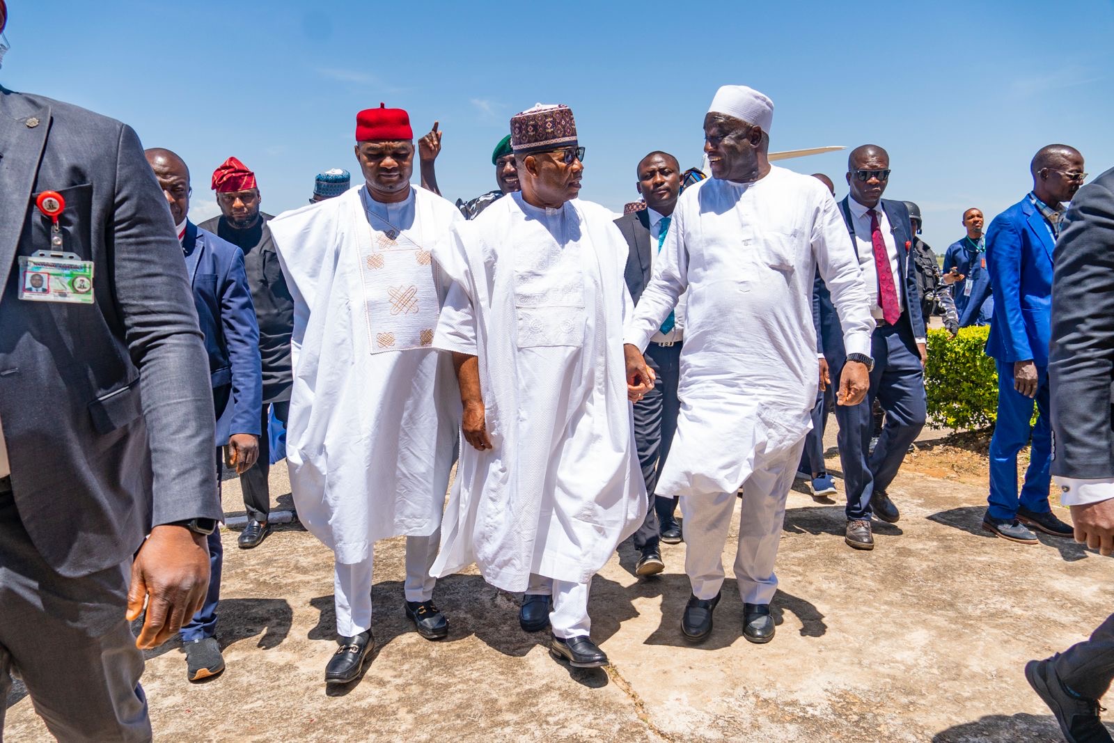 The Senate President, Godswill Akpabio, and his deputy, Senator Jubril Barau, who arrived at the Yakubu Gowon Airport, Jos, were highly received by the Distinguished Senator Simon Bako Lalong and Senator Diket Plang and other highly anticipating and Joyous Plateau APC BIGWIGS and supporters who came to receive the Senate Delegation into Plateau.