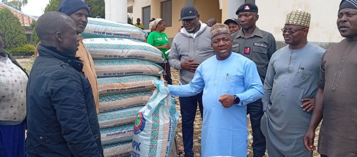 The Executive Chairman of Pankshin Local Government Council, Hon. Felix Amos Gonung has flagged off the distribution of farm inputs to registered farmers under the auspices of the Fadama Project (KSG) in Pankshin Local Government Area. The farm inputs included fertiliser, maize seeds and rice seeds. In his message to the beneficiaries, Hon. Felix Amos Gonung appreciated the efforts of the State Government under the leadership of H.E Barr Caleb Manasseh Mutfwang, the Executive Governor of Plateau State for providing the needed counterparts funding for the provision of the farm inputs which is timely and necessary as the farming season begins in earnest.